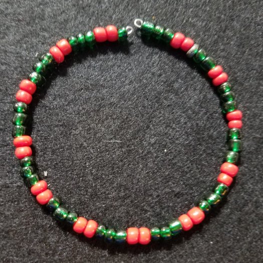 Don't know what Jewelry to get that special someone to celebrate st.particks day, Christmas or any occasion? We have a beautiful red Opaque and green bracelet. Made with memory wire for an adjustable fit for any size. The best part is it's homemade and at a good price too.